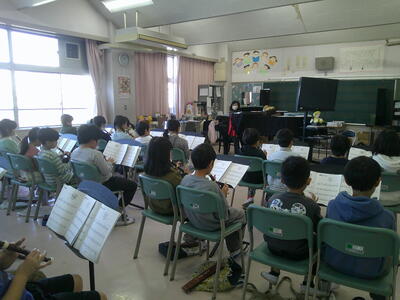 「風の置手紙」の曲で、ファ・ミ・レの指の動きを練習をしました。