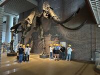 マンモスの大きさとその迫力にびっくりしています。しっかりメモをとり学習しています。