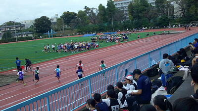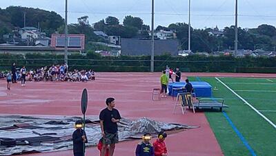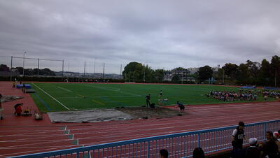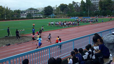 今日は市内陸上大会が行われました。雨が心配されましたが、実施ということで選手20名が元気よく朝、出発していきました。私も、時間差で自転車にて現地に向かいました。一緒にバスに乗ればよかったと後悔しながらスポーツセンターの坂道を上りました。
