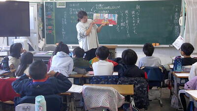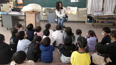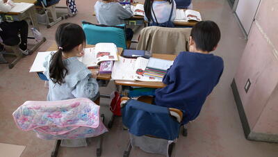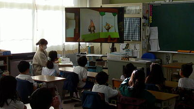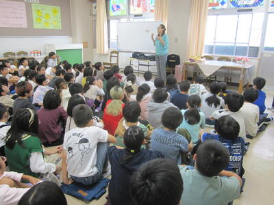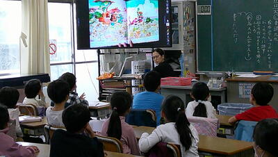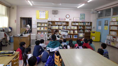 いつものように、学校図書館員による読み聞かせをしてもらっています。
