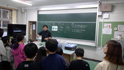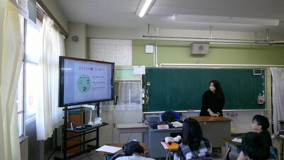 生命の誕生について、配付した資料を見ながら、先生の説明を真剣に聞いていました。