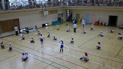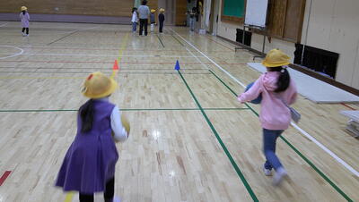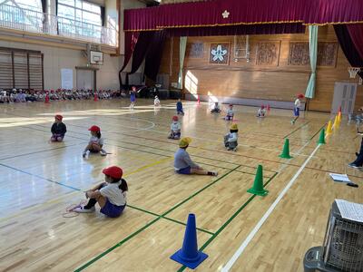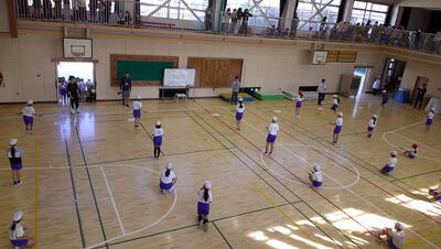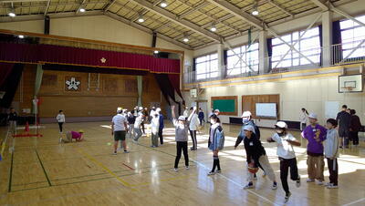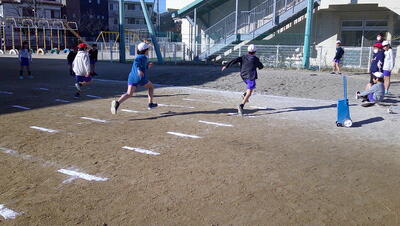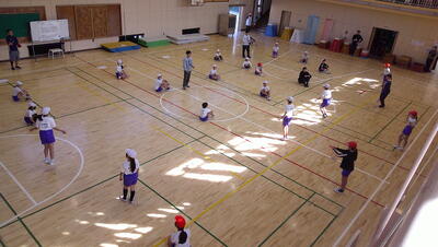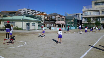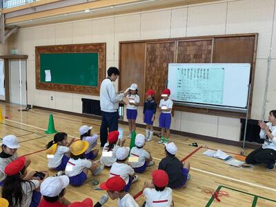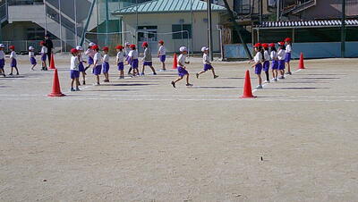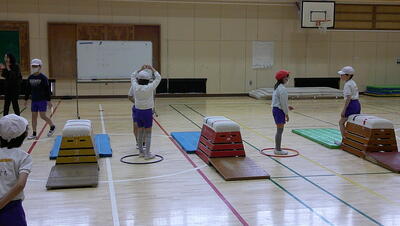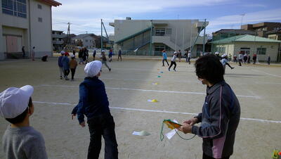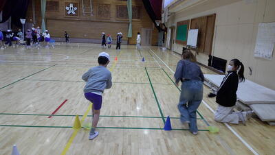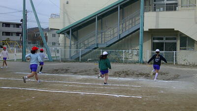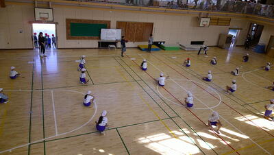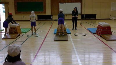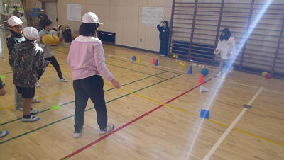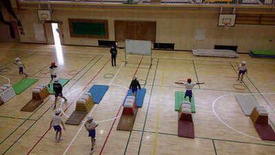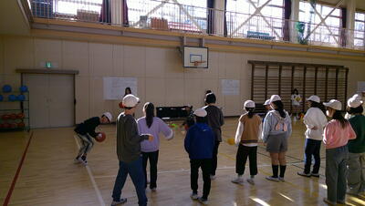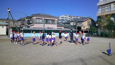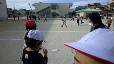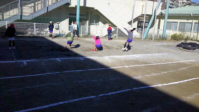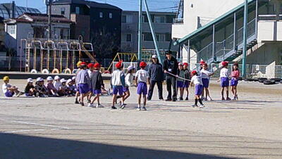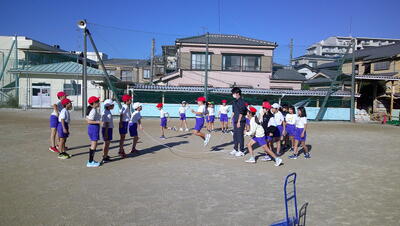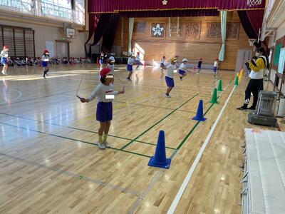 明日に控えた、二重跳びリレーの予選。体育の授業でも最初の時間に個々が縄跳び練習をする時間を与え、スキルアップと体力の向上に取り組んでいます。