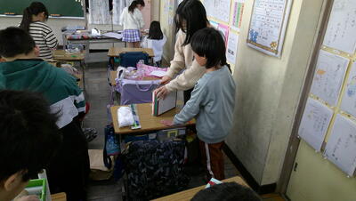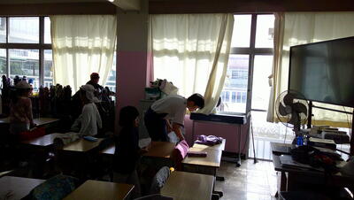 掃除の時間、2年生と一緒に机や椅子を運んでくれました。