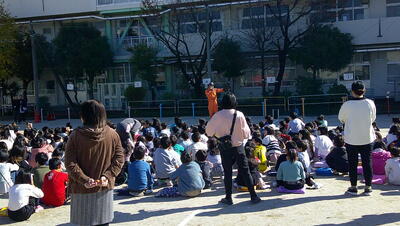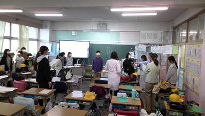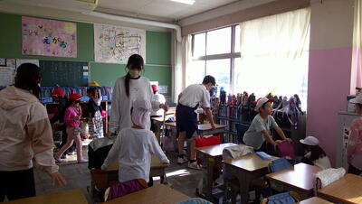 今日は朝から気温が高く、子供たちの服装も軽装で、上着をランドセルに引っ掛けてくる児童もいました。過ごしやすい一日でした。