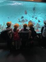 大きな魚に大興奮です。リーダーさんを中心に経路順に見学しています。