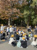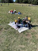 芝生で仲良くお昼ご飯です。お弁当もおやつも美味しくいただきました。