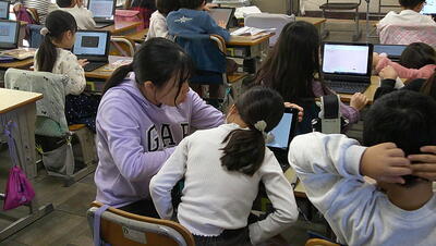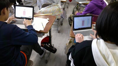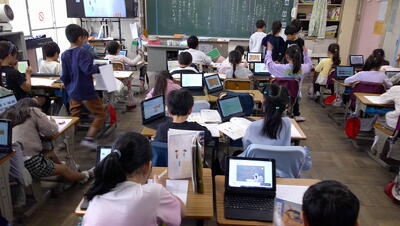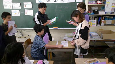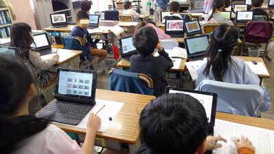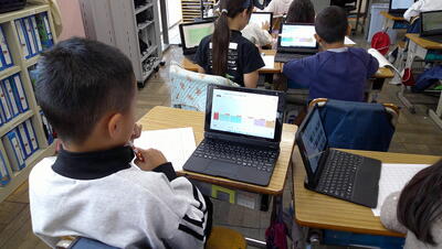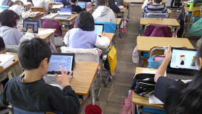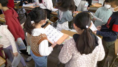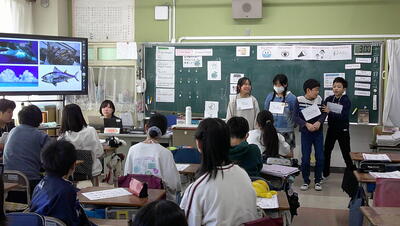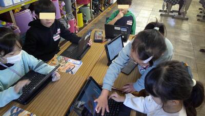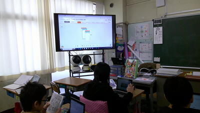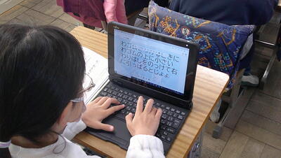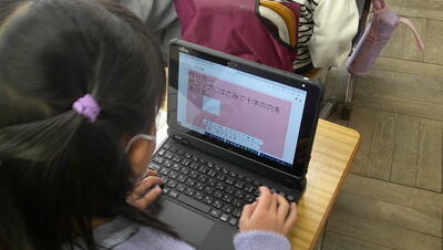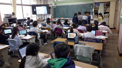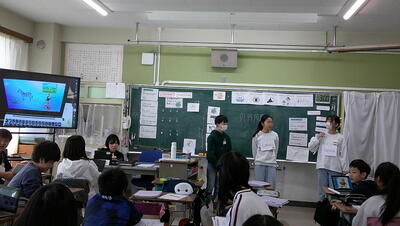 子供たちは、主体的に調べて、発表の準備を行っています。また、動画を自分たちで撮影して、説得力のあるものにしようとグループで取り組んでいます。
