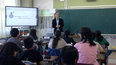人権教室がありました。1時間ごとに教室で外部講師をお招きし、授業をしていただきました。子供たちの日常にありがちな内容を取り上げ、一人一人が自分のこととして考えるよう問いかけていました。そして、その状況になった時の気持ちを、仲間に伝え合っていました。