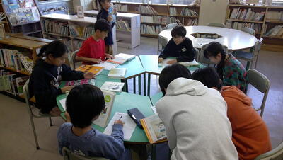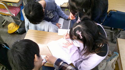 「ひみつを調べよう」の単元では、グループごとにプレゼンの準備をしています。