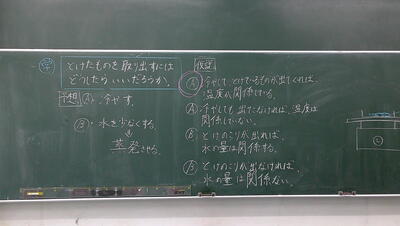 溶ける様子をじっくり観察しています。実生活と結び付けて考える子供のつぶやきや発言もあって、非常に濃い学習をしています。