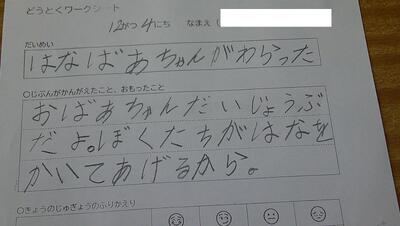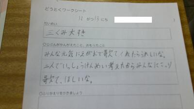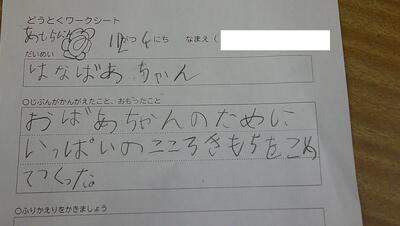 授業の最後には、一人一人にこれまでしてきた親切や、これらしたい親切について、振り返りに書きました。