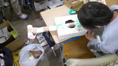 苦戦しながらも、押したり引いたりして、のこぎりの刃を前後に動かすことができました。