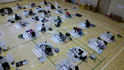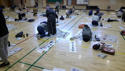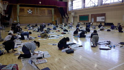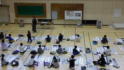 練習の時間が終わると清書タイムです。一人一人、めあてを確認して清書を書きます。