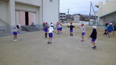 業間休み、二重跳びリレー予選①がありました。