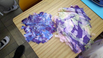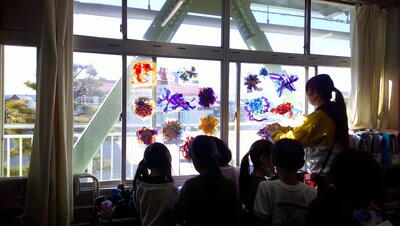 「にじいろのさかな」が完成しました。一人一人個性ある作品で、どれも力作です。