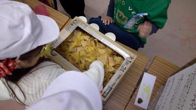箱の面や形、面の数について一人一人が家庭から持ってきた箱で調べていました。