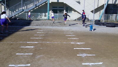 少し肌寒い気候でしたが、運動をするにはちょうど良かったのかもしれません。5・6年生男女100M走、5・6年生走り幅跳びの様子です。