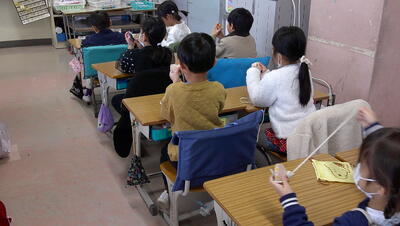 今日も強風がひどく、寒い寒い一日でした。「春よ来い、早く来い」心の中で、叫びながら朝の登校挨拶をしていました。また、本日、きこえの教室では卒業生を祝う会を行いました。今年度、唯一の難聴教室の卒業生です。きこえの教室在校生のみんなで、心温まるお祝いをしました。