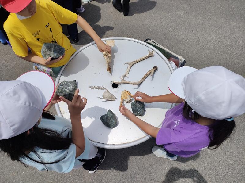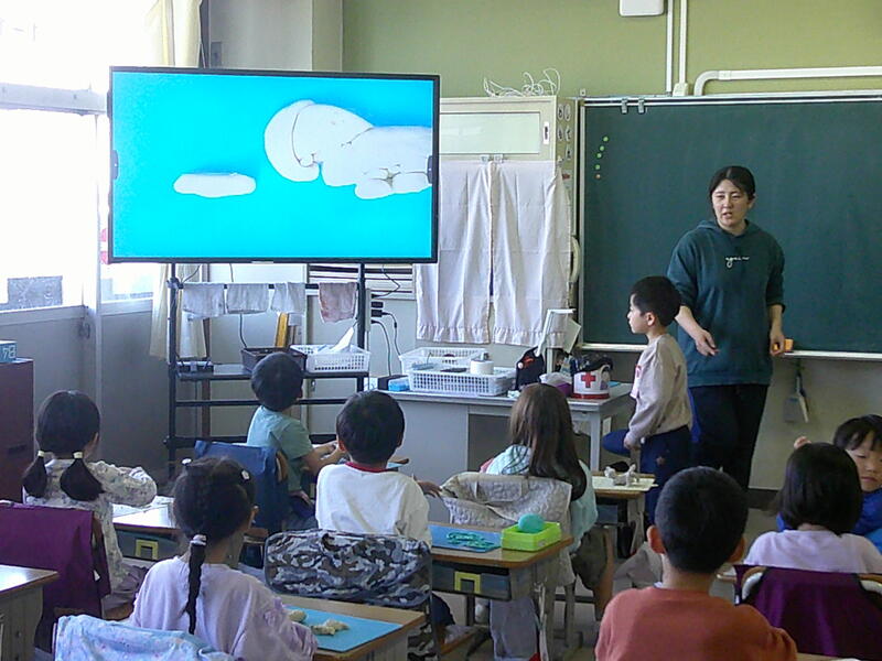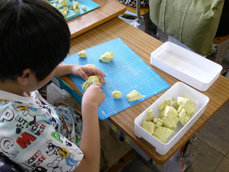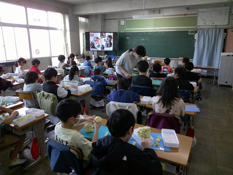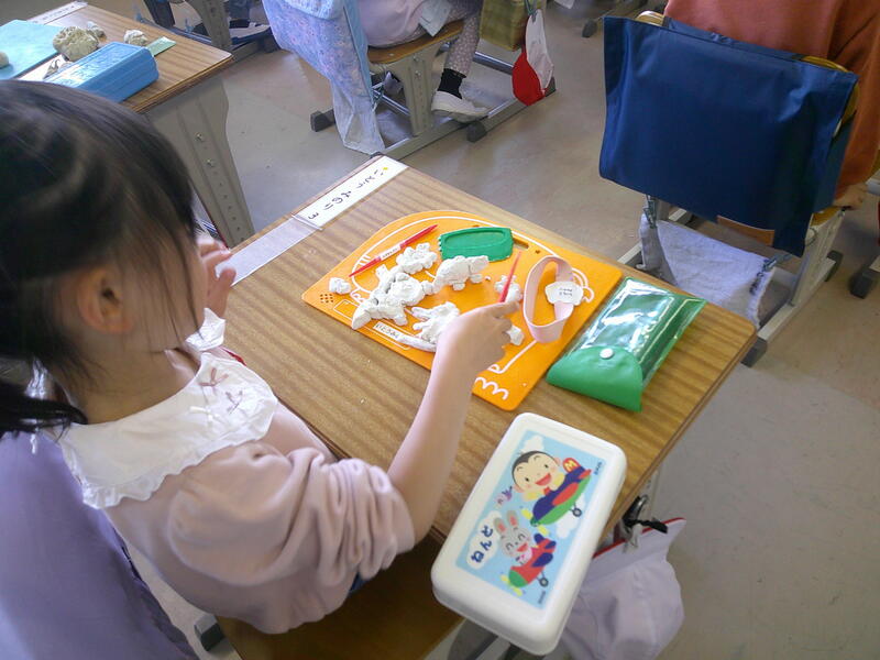 粘土を使って、動物を作りました。授業の最後に、自分たちが作った作品を伝え合いました。動物の特徴をつかんで、細かい作業も入れながら仕上げていました。