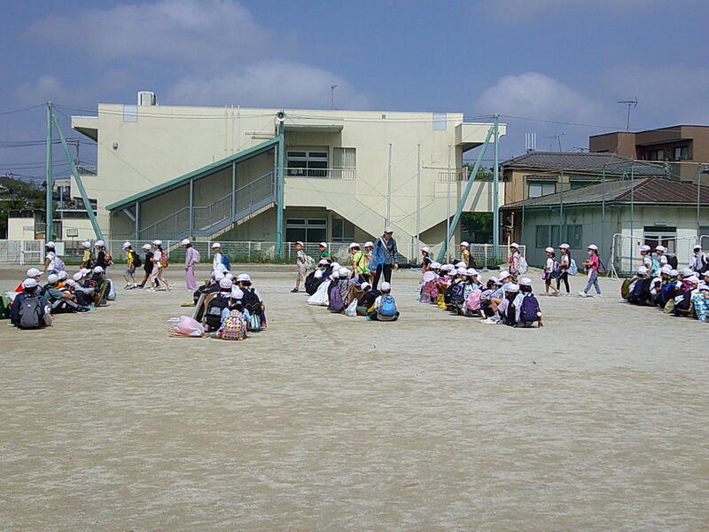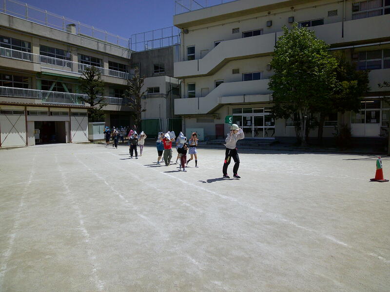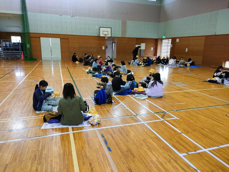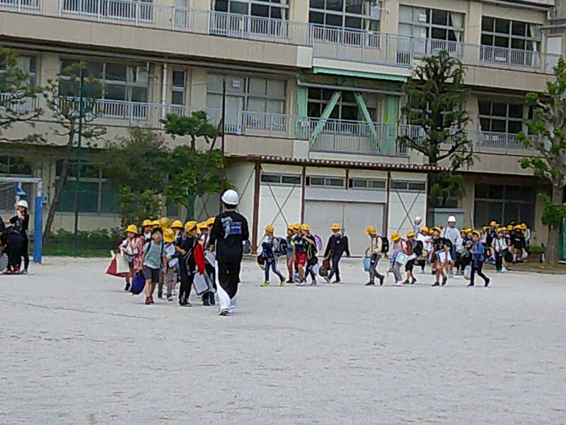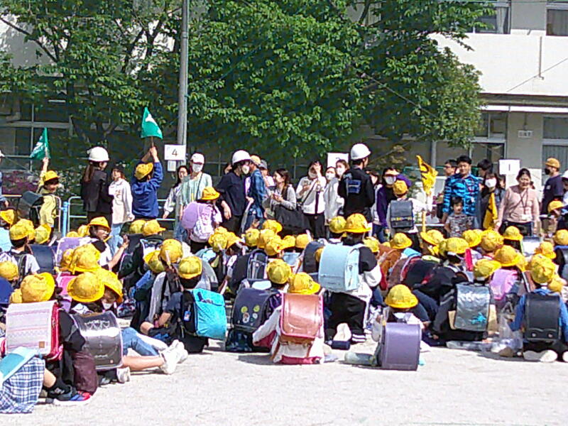その後、緊急放送から校庭に避難し、引き渡しを開始しました。引き渡しのない場合は、下校コースに分かれて集団下校をしました。