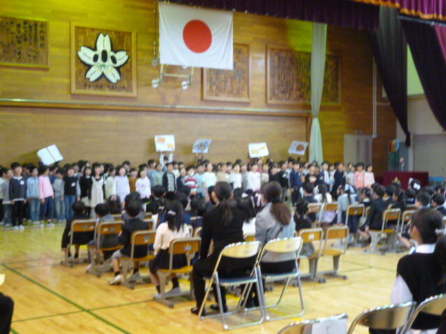 外は大荒れでしたが、式場はとてもあたたかい雰囲気で、2年生が小学校の様子について少し発表をしてくれたり、6年生が素敵なハーモニーで校歌を披露してくれました。