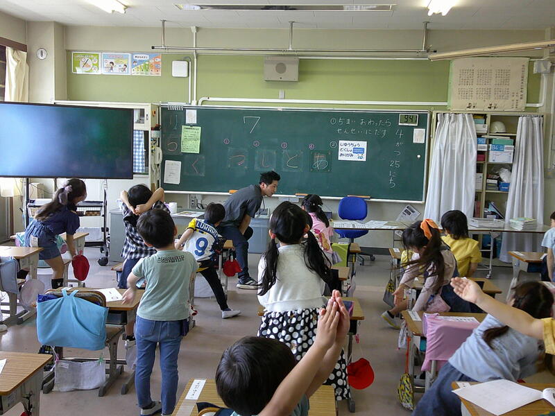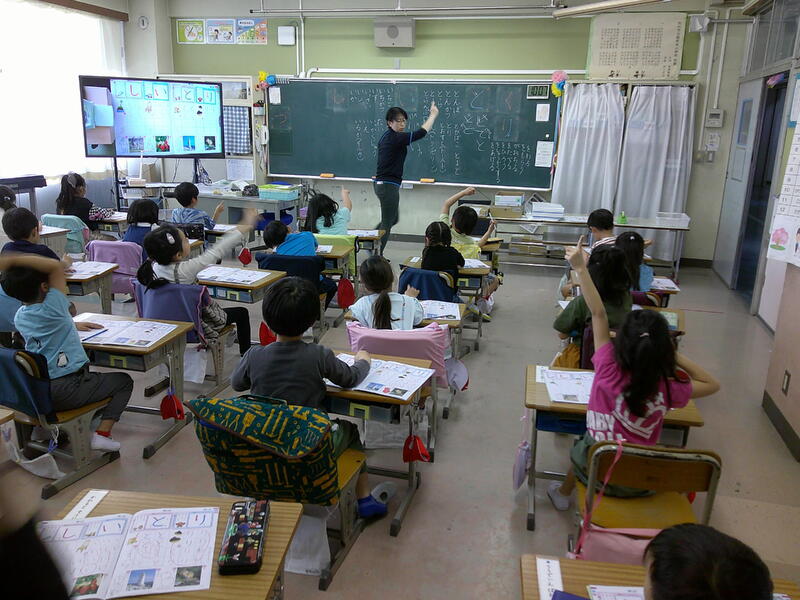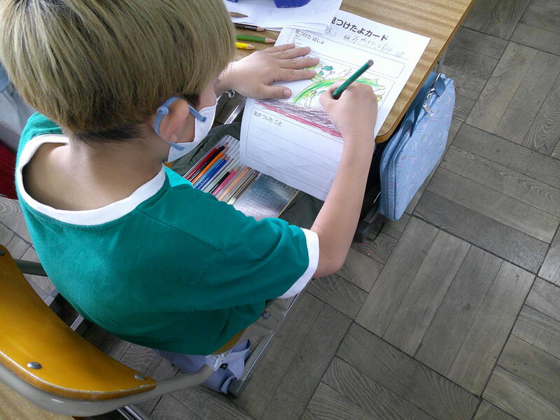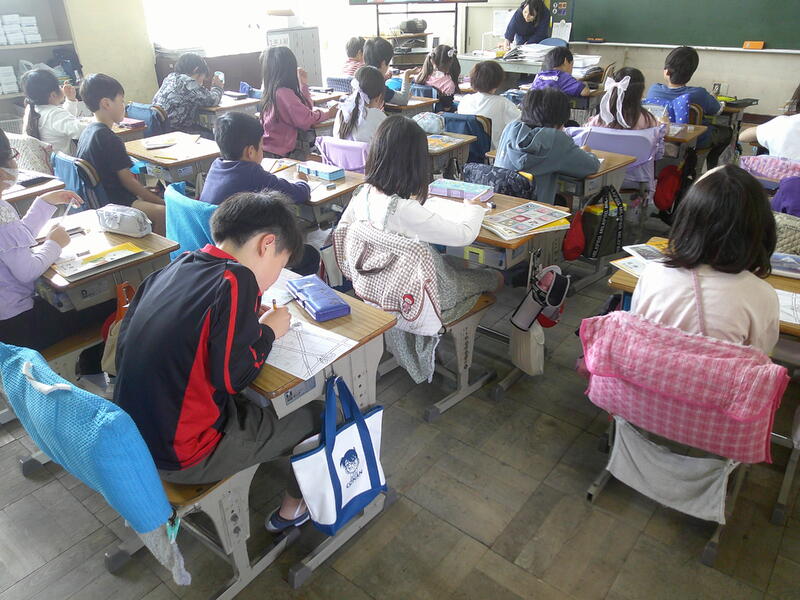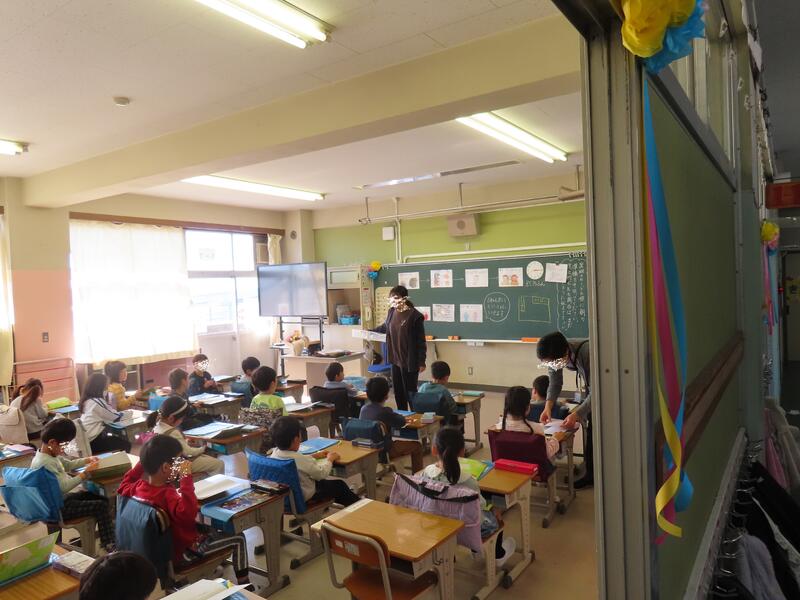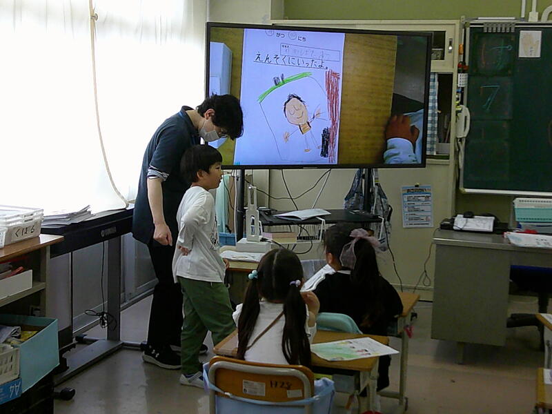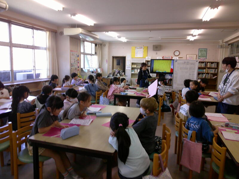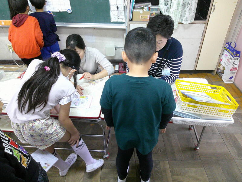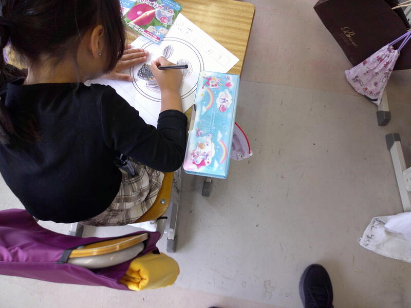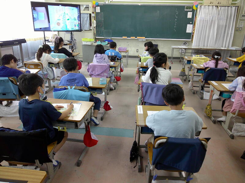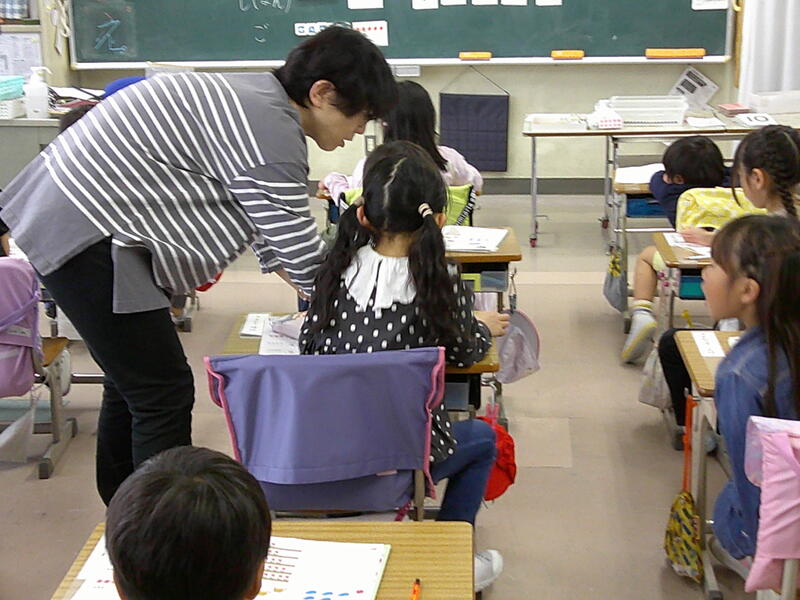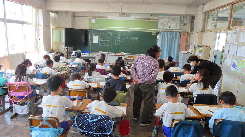 1年生は一つ一つ、丁寧に教えてもらいながら取り組んでいます。スクールサポートスタッフの先生も入ってくださって、わからない児童や不安に思っている児童に声をかけてくれています。
