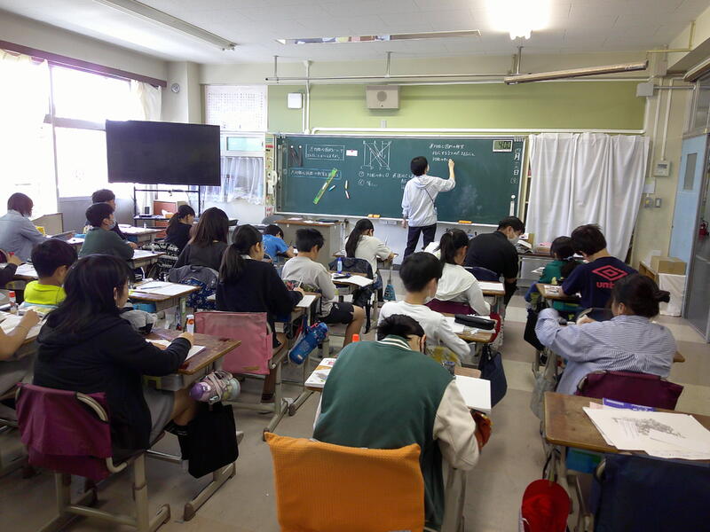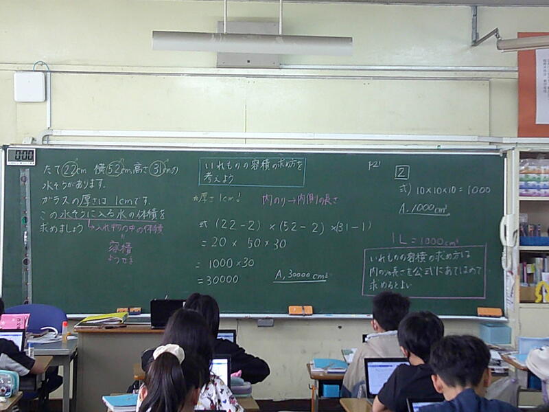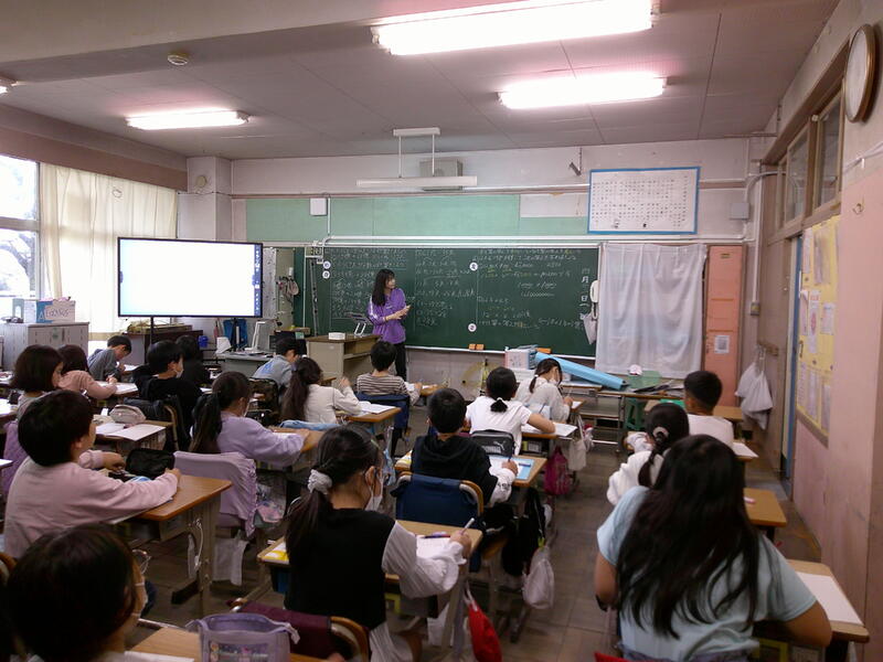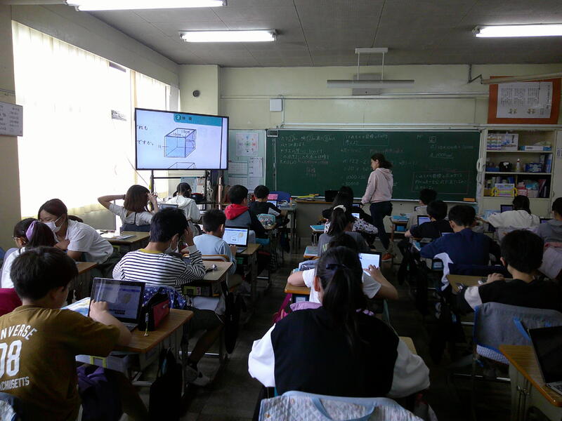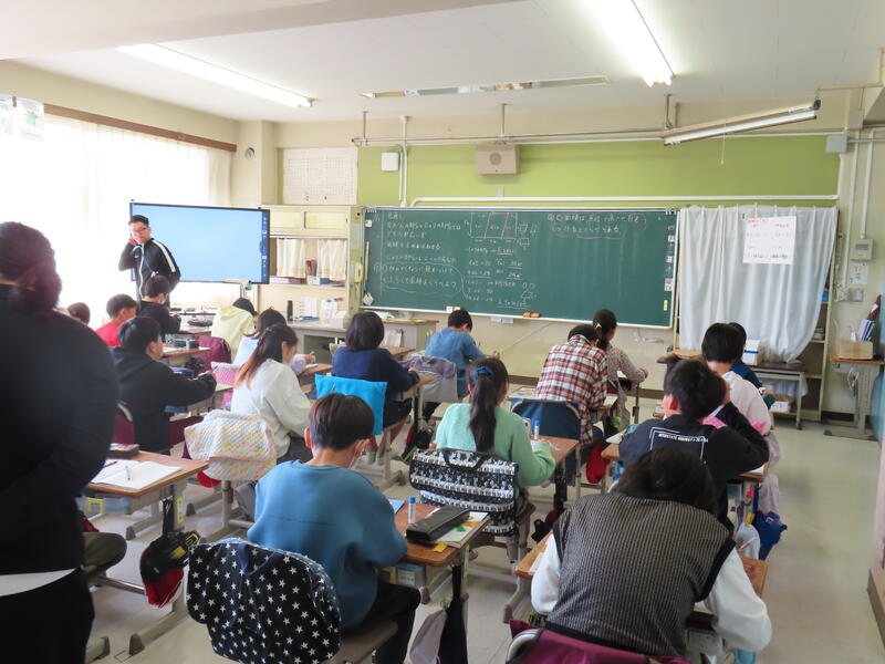 6年生、算数科の授業です。少人数の先生が入り、T1、T2で行っています。