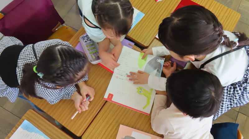 2年生国語科の学習で、グループで音読の順番を決めています。