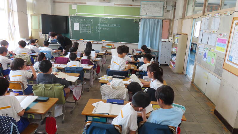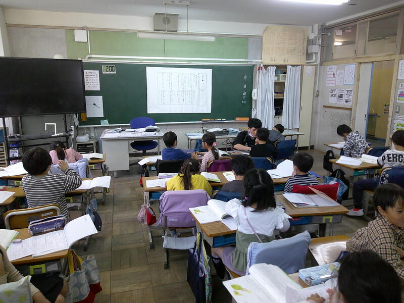 授業の中で、じっくりと個別対応をする場面があります。その際に、いくつかの課題をクリアーすると、各々、個の取り組みをしています。ある子は、タブレットを活用して、漢字の正しい書き方にチャレンジ。ある子は、漢字ドリルに取り組む。また、ある子は友達通しで互いにわからないところを学び合っている。指示待ちではなく、主体的な学び方が自分の力として身に付くことでしょう。