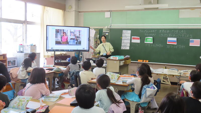 4年生 外国語活動の授業 自己紹介を聞き取る授業です。