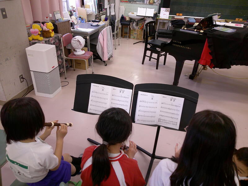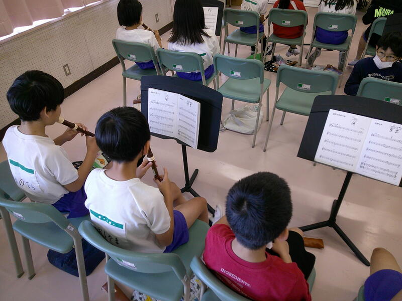 リコーダーに取り組んでいます。「カポット」という曲で、タンギング、休符等のとり方を練習しています。