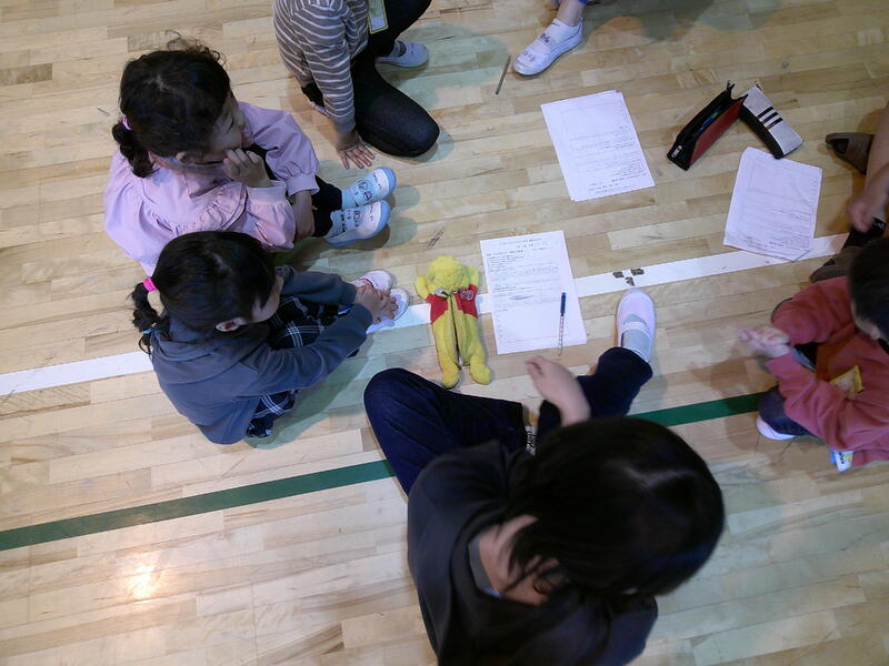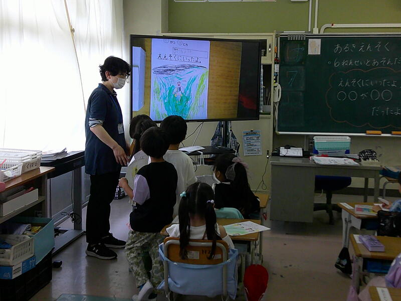 お兄さん、お姉さんと楽しく遊んだ様子や、芝生の上にレジャーシートを敷いて寝ころんで気持がよかった様子を発表する子など、一人一人、しっかり思いでを伝えることができました。