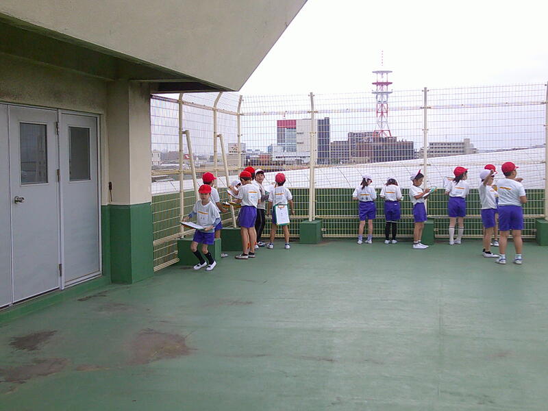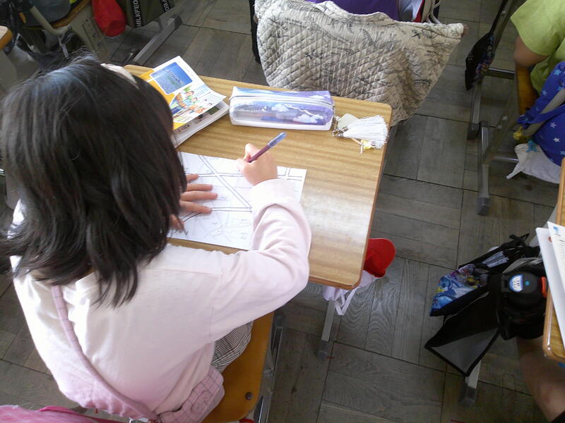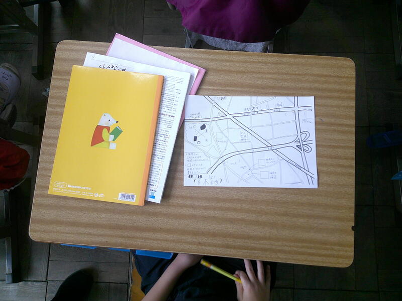 以前、屋上から東西南北を区切りながら眺めて、調べた様子を白地図に表しています。一つ一つの場所を確認しながら地図を作成中です。
