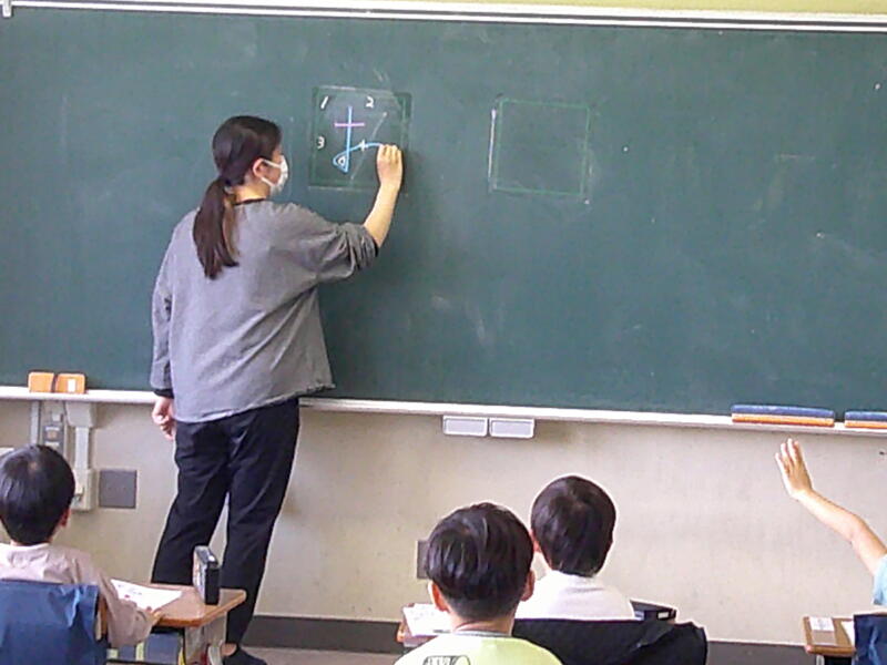 数字の読み方や書き方を学んでいます。担任の先生は、書けた子からノートを確認して、合格するとはなまるやシールをもらい、子供たちは喜んでいます。