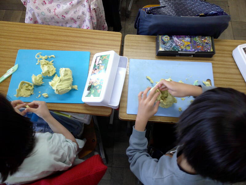 3年生 図工「けずって つけて」粘土を使った授業です。
