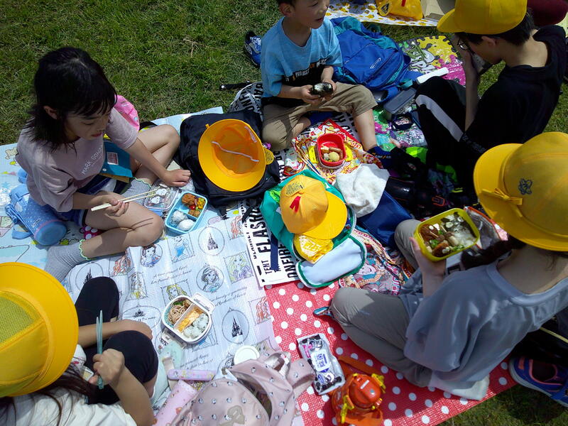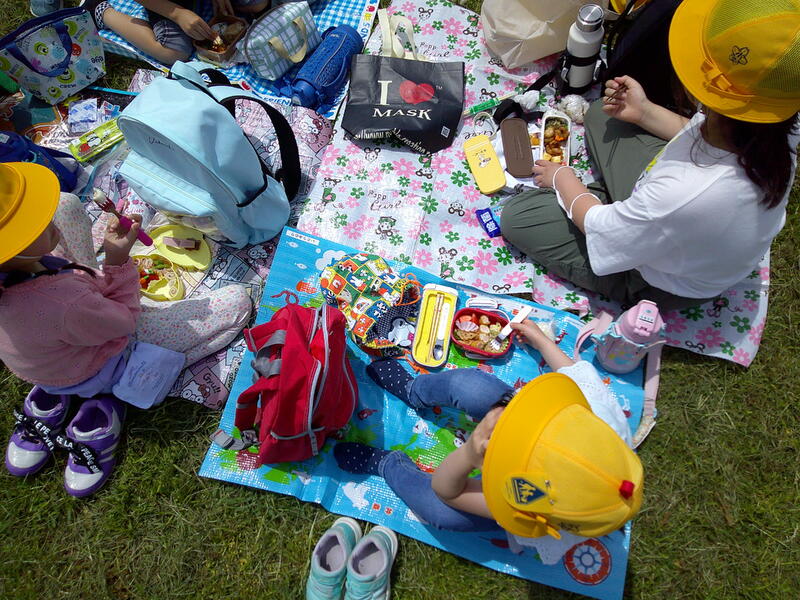いっぱい遊んだ後は、昼食です。朝早くからお弁当作りをしていただいた、お家の方に感謝していただきました。