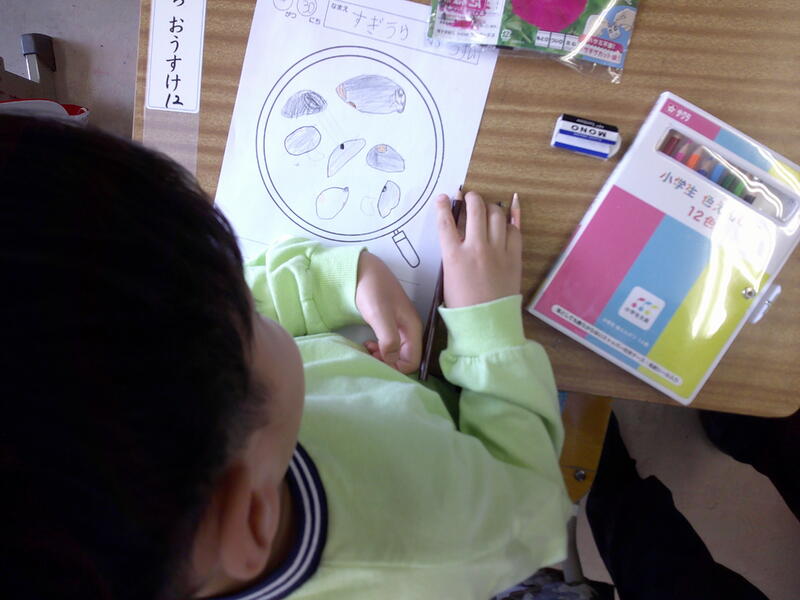 1年生 生活科 「はなややさいとなかよし」の学習で、あさがおの種の観察をしました。
