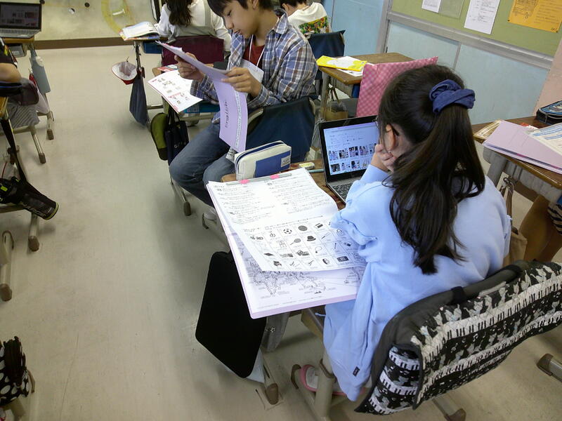 6年生 外国語活動 自己紹介のセリフを作成しています。