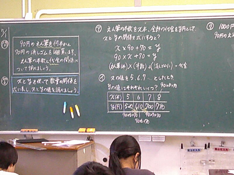 Xとyを使って数量の関係を式に表し、Xやyの値を調べました。