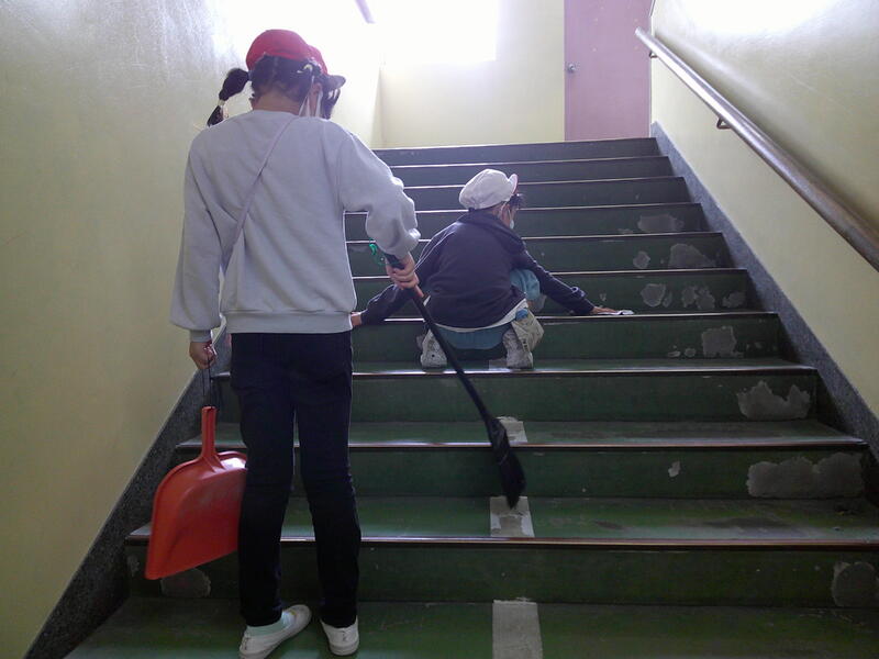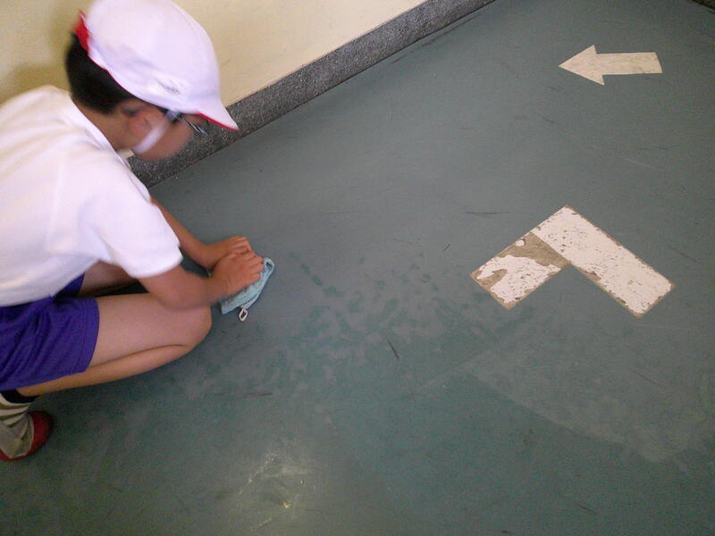清掃の時間です。今日は、あいにくの雨で外遊びができませんでしたが、昼休みから清掃の切り替えが、とても速いです。掃除に対する意識が高いので、どこの場所もきれいです。