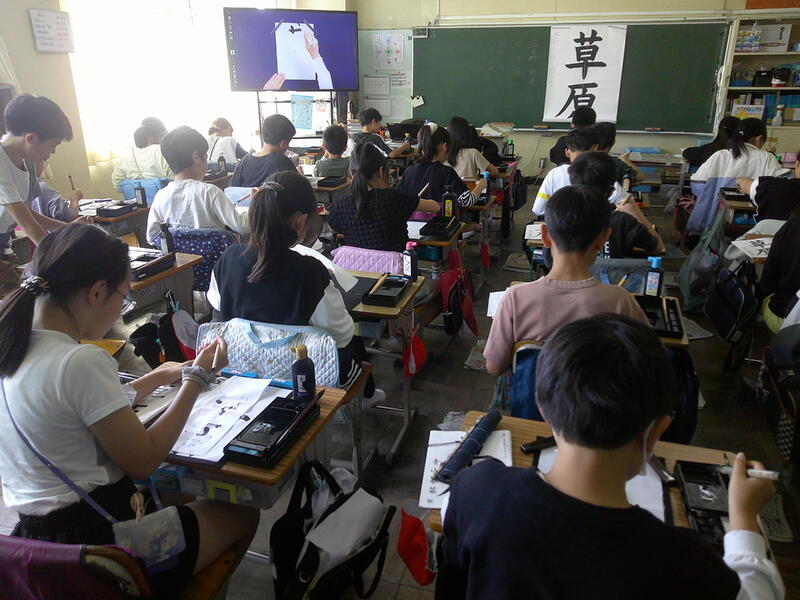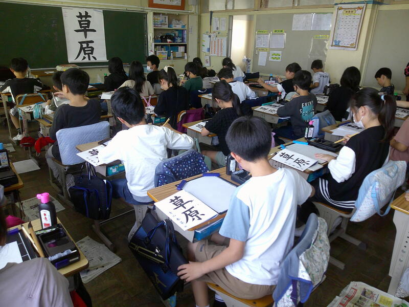 5年生 書写の授業です。毛筆で「草原」を練習しました。
