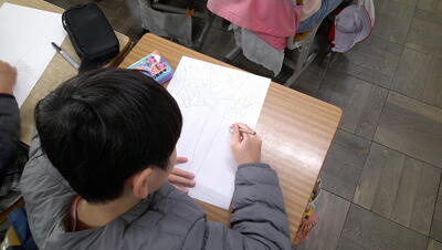 紙版画に取り組むようです。そのための、デッサンをしています。