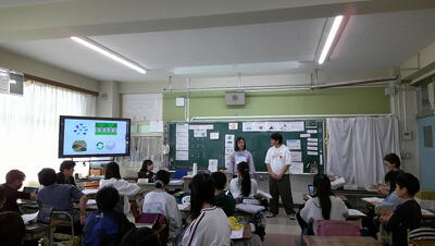 グループ一人一人が環境問題と関連する動物を挙げて、どのようにしていきたいか簡潔に英語でスピーチしました。相手にわかりやすいように、パワーポイントも作成しました。