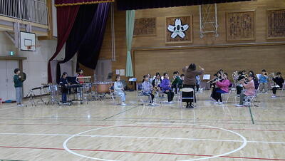 放課後、吹奏楽部は寒い体育館で練習をしていました。22日の管弦楽フェスティバルに向けて、練習に励みます。