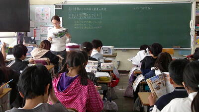 「短い話を読んだり、自分たちの一日を伝えよう。」が学習のめあてです。