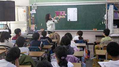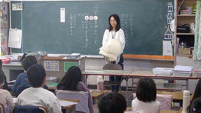 お話を聞くと、学習教材に役立てばと、ご自宅から持ってきてくださっとのことです。国語科や社会科の教科書で学んでいることが実際に触れて、見ることができる体験は学習を深めることにもつながります。