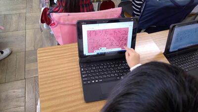 「おもちゃんの説明書を書こう」という単元です。生活科の学習で作ったおもちゃの説明書を書くために、オクリンクプラスを活用し、メモづくりをしています。