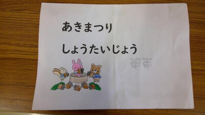 1学年で秋祭りを行いました。この日のために、ご家庭にも協力していただき、準備をしてきました。私は子供たちから招待状をいただいていたので、楽しみにしていました。