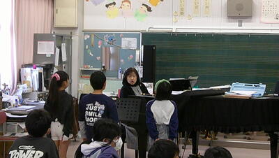 音楽「いるかはざんぶらこ」の学習で、手拍子でリズム打ちをしながら、元気に歌いました。