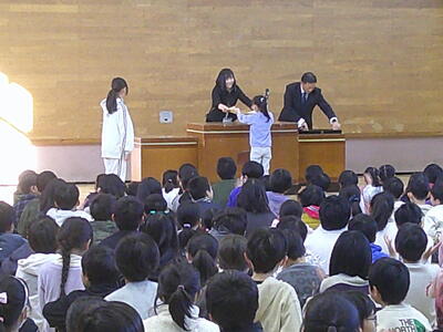 読書感想文コンクールの表彰と朝食選手権の表彰です。